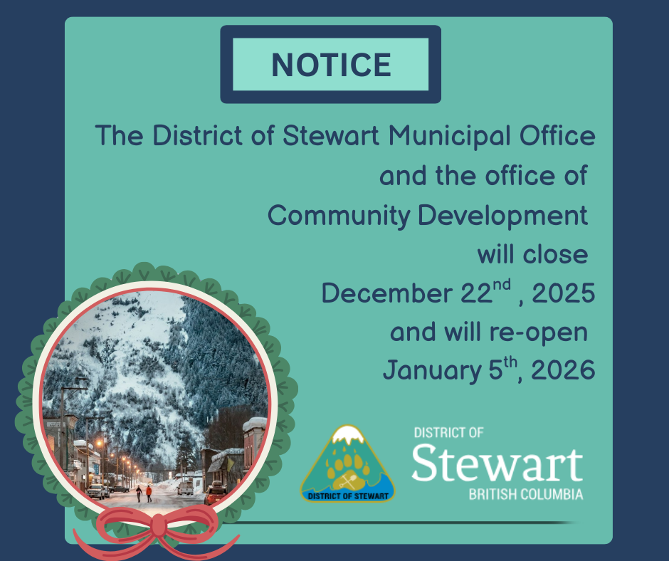 The District of Stewart has posted a notice regarding holiday hours for the new year.